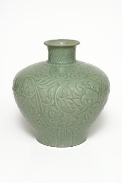 Vaso con tralci vegetali e fiori di loto