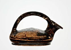 Askos attico a figure rosse. Lato A: sfinge. Lato B: cerva