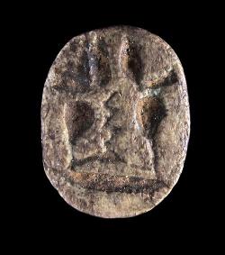 Scarabeo in steatite con faraone seduto in trono, dall'Egitto