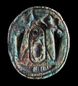 Scarabeo in steatite con nome di Amon Ra, dall'Egitto