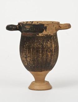 Skyphos su stelo a vernice nera sovraddipinta