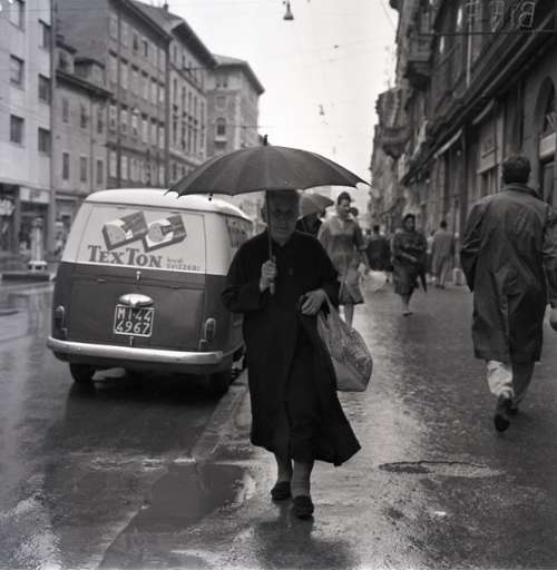 Pioggia : vecchia con ombrello