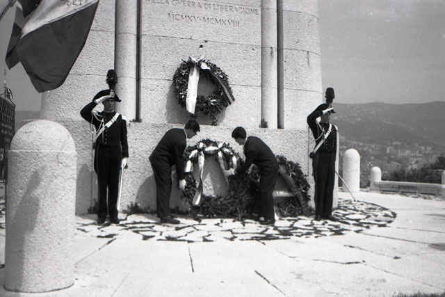 Corone ai caduti e dispersi Repubblica Sociale Italiana (San Giusto) ; bagnanti scogliera