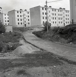 Palazzina in costruzione all'ingresso della Grotta Gigante e case O.A.P.G.D. a Santa Croce