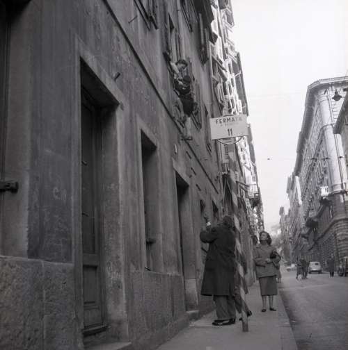 Fiat 1100 sul marciapiede v. Oriani - Madonnina + auto con pioggia v. Ginnastica