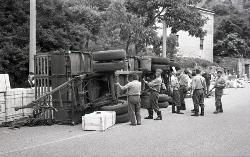 Camion rovesciato in via Severo e vecchietta con carro e asinello