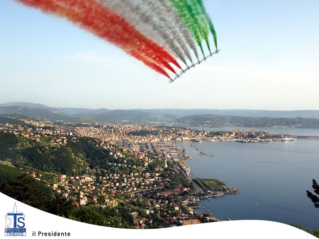 Provincia di Trieste, manifesto montaggio frecce tricolori, città.