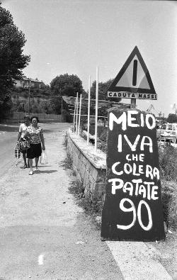 Scritta "Meio IVA che colera Patate 90” a Muggia