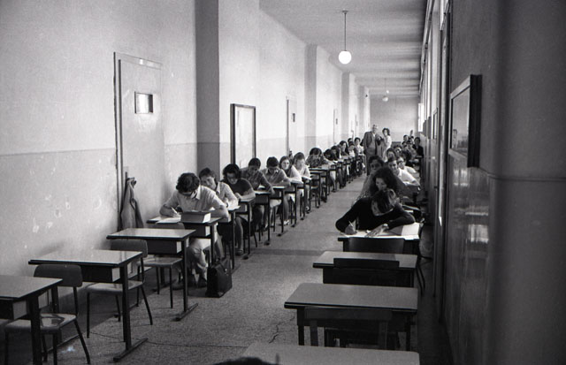 Studenti esterno Liceo Dante e busto Dante Alighieri