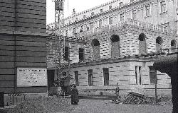 Ruderi casa bombardata in via S. Francesco - Lavori preparatori circumvallazione FS