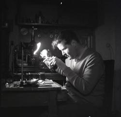 Fulvio Stradella mentre ripara macchina fotografica