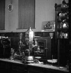 Tazzine caffé e pubblicità Hausbrandt sul set di Senilità al caffè Milano