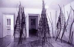 Allestimento della mostra di Bruno Munari presso la Galleria Bassanese