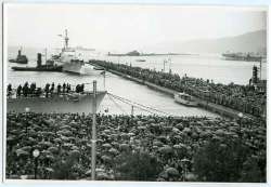 La folla in piazza Unità attende l'arrivo delle navi italiane