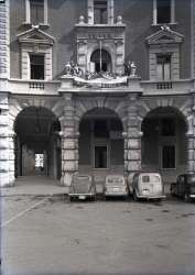 Preparativi per bandiere - Piazza Unità. Partenza giunta comunale. Serie Italia