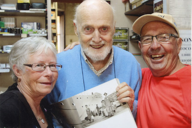 Ugo Borsatti con due coniugi emigrati con la motonave Castel Verde