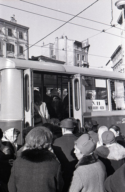 Gente sale su tram in via Giulia e autobus a Valmaura per Popolo FVG
