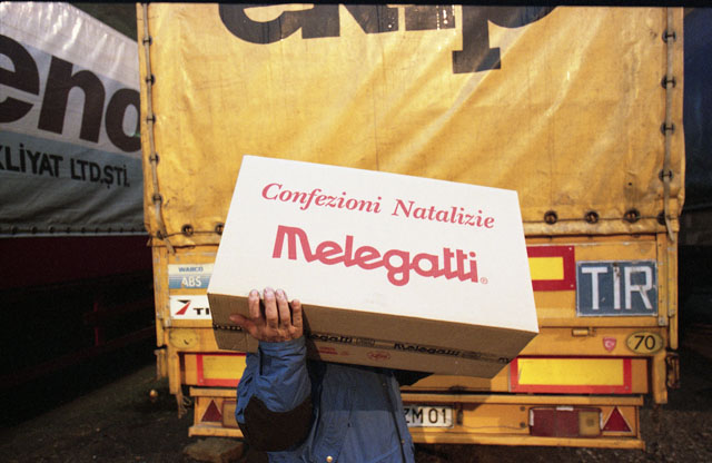Supermercato, trasportatori generi alimentari. Camionisti poveri turchi. Soldi. Illy, sopralluogo mostra e restauro comunità greco ortodossa. Via Mazzini. Pope. Chiesa greco - ortodossa.