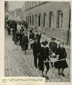 Uomini e donne tedeschi di Neunburg, trasportano i corpi delle vittime al cimitero della città