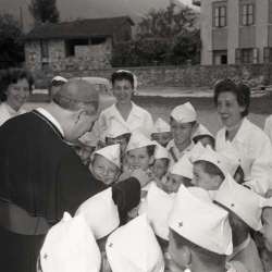 Visita del vescovo Santin alla colonia CRI di Villa Santina