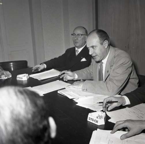 Riunione D.C. (?) : tavolo circolare, presenti on. Belci, Delise, ecc.
