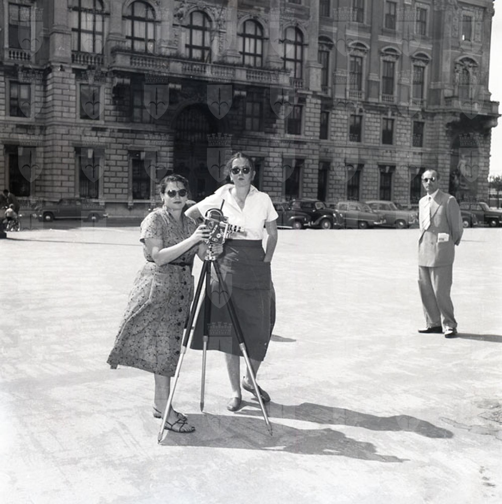 Donne con cinepresa in piazza Unità