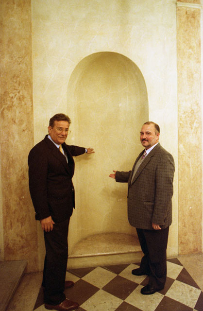 Roberto Dipiazza sindaco e Roberto Menia assessore alla conferenza stampa sulla "Porta della Pace" : Trieste : 2002