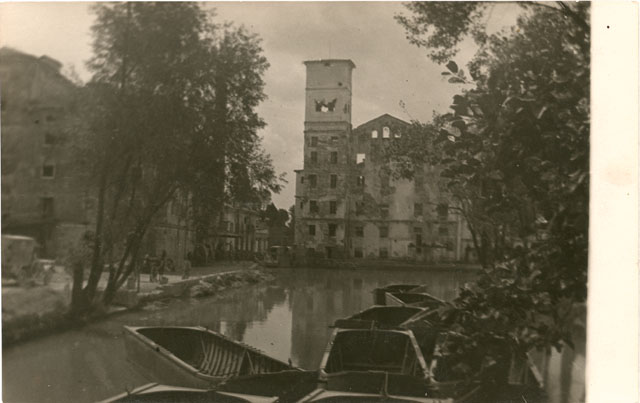 Veduta. Case danneggiate dalla guerra mondiale 1914-1918