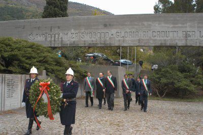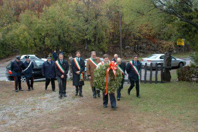 I Sindaci della Provincia di Trieste depongono una corona in piazza ad Aurisina Cave al monumento a tutti i Caduti : Trieste : 2003