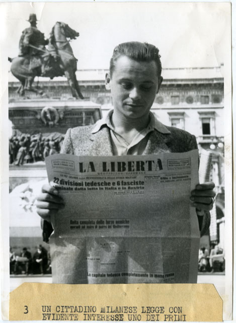 UN CITTADINO MILANESE LEGGE CON EVIDENTE INTERESSE UNO DEI PRIMI GIORNALI DELLA LIBERA STAMPA MILANESE