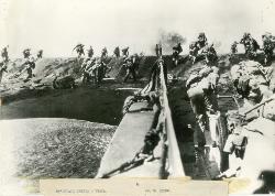 Torrette, trincee, sbarramenti anti carro nell'isola di Iwo Jima per impedire lo sbarco americano che ebbe luogo il 19 gen. 1945 e che segnò una delle battaglie più sanguinose di tutte le operazioni del Pacifico