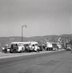 Nave Loide Bolivia (caffè). Stand mobile pubblicitario BP (in riva)