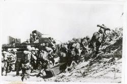 Ad Okinawa soldati Americani trasportano dei pezzi di artiglieria su di una collina, prima della battaglia finale