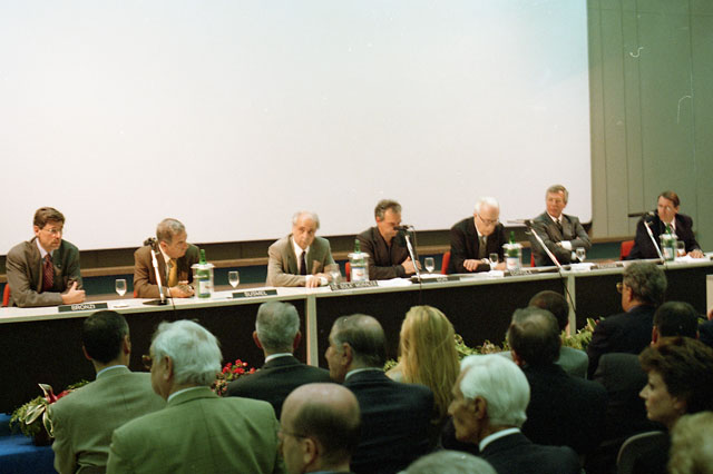 Roberto Dipiazza sindaco e Silvana Alessio presidente della FIDAPA presentano il riconoscimento che verrà attribuito dalla FIDAPA a Fulvia Costantinides : Trieste : 2002