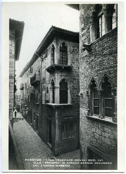 Parenzo: case veneziane ogivali (sec. XV) alla Crosera di strada grande decumana col cardine massimo
