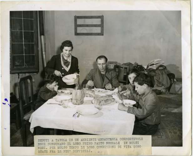 SEDUTI A TAVOLA IN UN AMBIENTE ABBASTANZA CONFORTEVOLE ESSI CONSUMANO IL LORO PRIMO PASTO NORMALE IN MOLTI MESI. PER MOLTO TEMPO LE LORO CONDIZIONI DI VITA SONO STATE FRA LE PIU' DIFFICILI