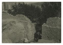 Trieste, Via S. Giusto : Restauri marzo 1931, scavi nella navata sinistra. Tombe e muri romani. Affresco con madonna all'ultimo pilastro.