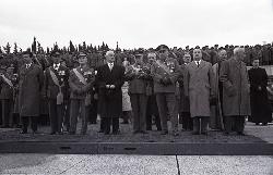 Celebrazione 3 novembre 1918 in Piazza Unità : dottor Mattucci, Generale Rossini, Ministro Segni