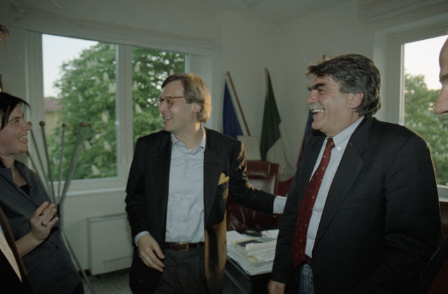 Fiera di Trieste esterni, panoramiche. Grimaldi, Codarin, Sgarbi, ambasciatore americano.