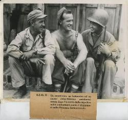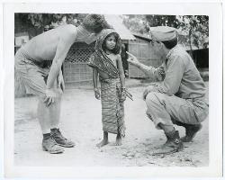 Truppe Americane e Cinesi su un ponte di barche improvvisato attraversano il fiume Mogaung