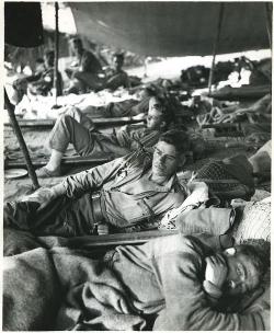 R.A.F. PILOT OFFICER CHARLES BOSTH LEARNS TO "PILOT" A GONDOLA WHILE ON HIS WAY FROM VENICE TO THE AIRFIELD AT THE VENICE LIDO.
