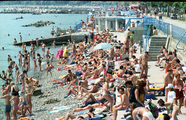 Taradash. Bagnanti a Barcola. Gabbiano ferito in via Valdirivo. Skateboard in piazza della Borsa. Pizzeria Vulcania, interno con pizzaiolo.