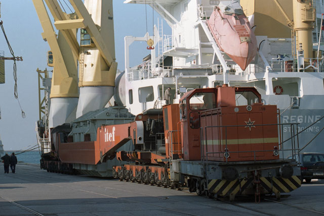 Treni nave mercantile, molo VI, porto nuovo. Imbarco carico merci, molo VI, porto nuovo. Parisi, Area di ricerca laboratorio.