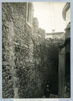 Dal sommo di un muro che limita la via dell'Asilo superiore verso le alture della via Giuseppe Rota. Le case N. 22 e 24 della via Giuseppe Rota