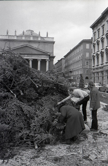 Abeti di Natale via Slataper e p.zza Sant' Antonio ; vetrine Foto Omnia e Ramani
