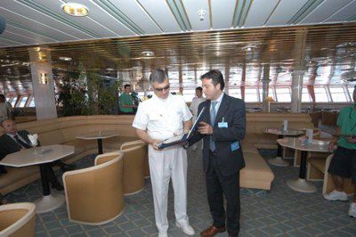 Cerimonia e incontro stampa sulla nave da crociera Emerald per l'inizio della stagione crocieristica 2005 : presente l'assessore Maurizio Bucci : Trieste 2005