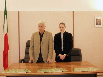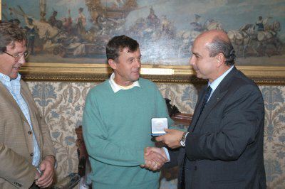 Il sindaco Roberto Dipiazza consegna il sigillo trecentesco della Città di Trieste al vice prefetto Giovanni Volpe : Trieste : 2002