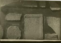 Trieste, Orto Lapidario : sistemazione di frammenti di plutei, recinzioni di sculture varie tardo antiche e medievali sul muro nord dell'angolo del ripiano superiore