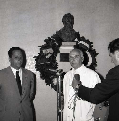 Scoprimento busto Santorio Santorio al Sanatorio INPS ; Cariatide marmo nero (Museo Revoltella)