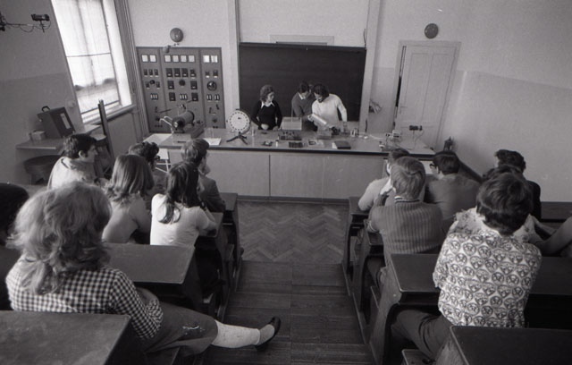 Biblioteca e aula (fisica?), probabilmente Liceo Oberdan